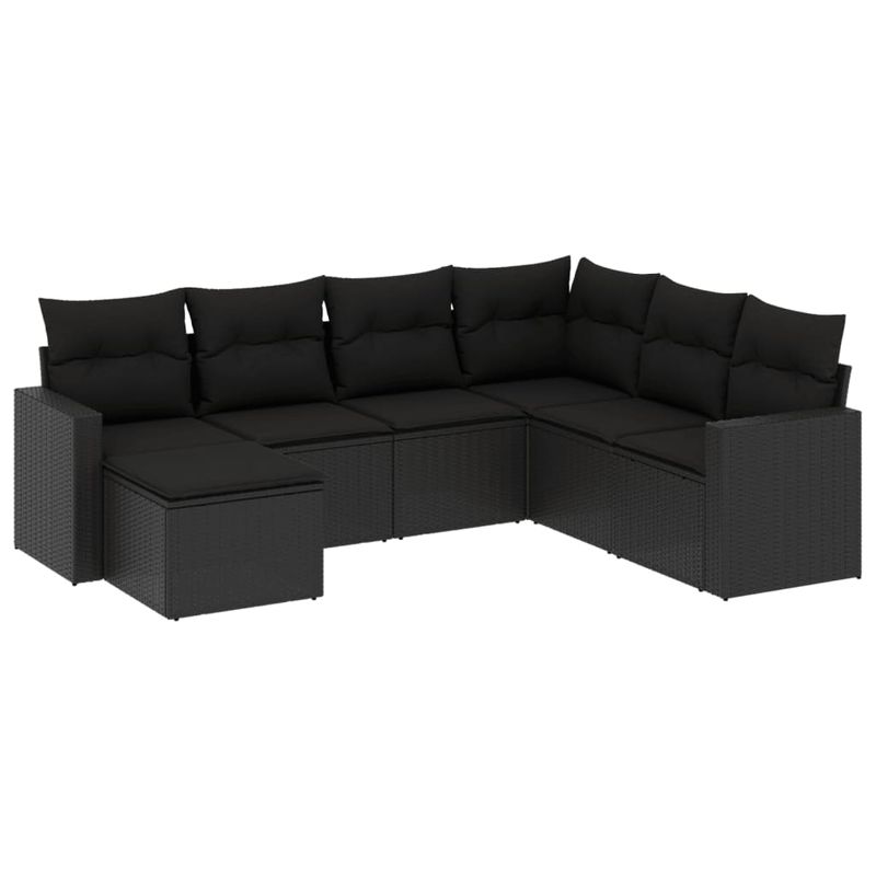 Set canapele de gradina cu perne, 7 piese, negru, poliratan Set canapele de gradina cu perne, 7 piese, negru, poliratan