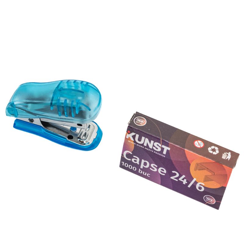 Set capsator KUNST, cu capse 24/6, 26/6, albastru Set capsator KUNST, cu capse 24/6, 26/6, albastru