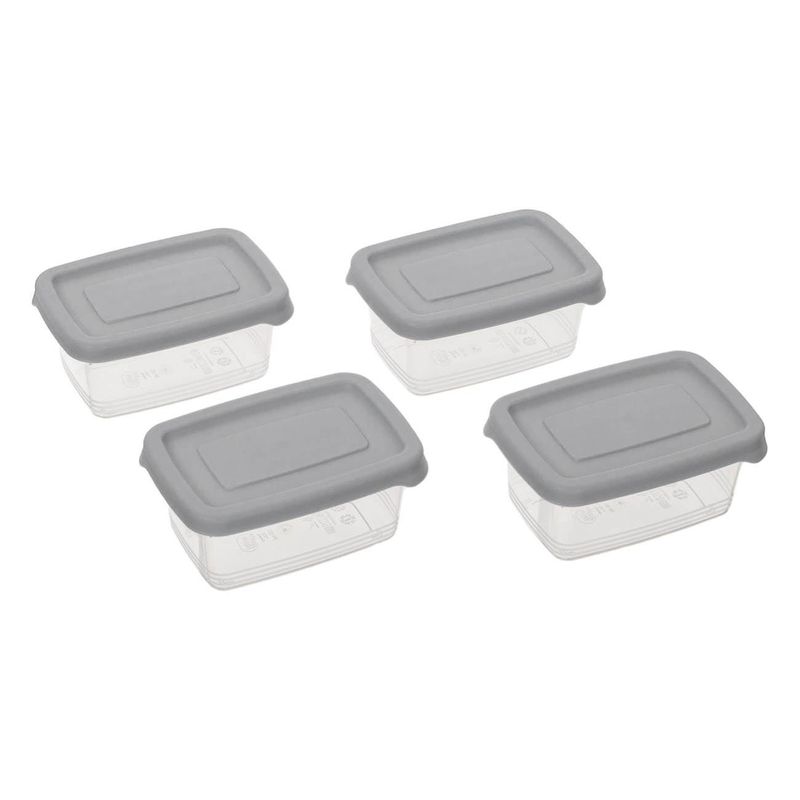 Casa si GradinaBucatarie si veselaOrganizare si depozitare bucatarieCutii alimentareSet caserole plastic, capacitate 120ml, transparent cu capac gri, 4 bucati