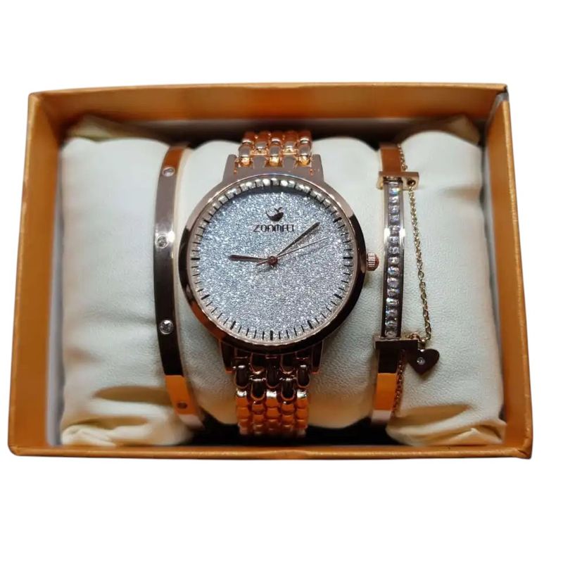 Set ceas de dama Zonfei auriu rose cu doua bratari Set ceas de dama Zonfei auriu rose cu doua bratari