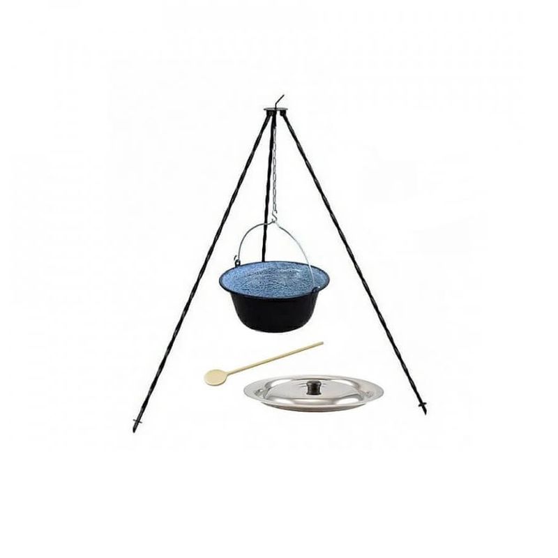 Set ceaun emailat 16lit. cu suport 1,2m, lingura de lemn 40cm si capac Set ceaun emailat 16lit. cu suport 1,2m, lingura de lemn 40cm si capac