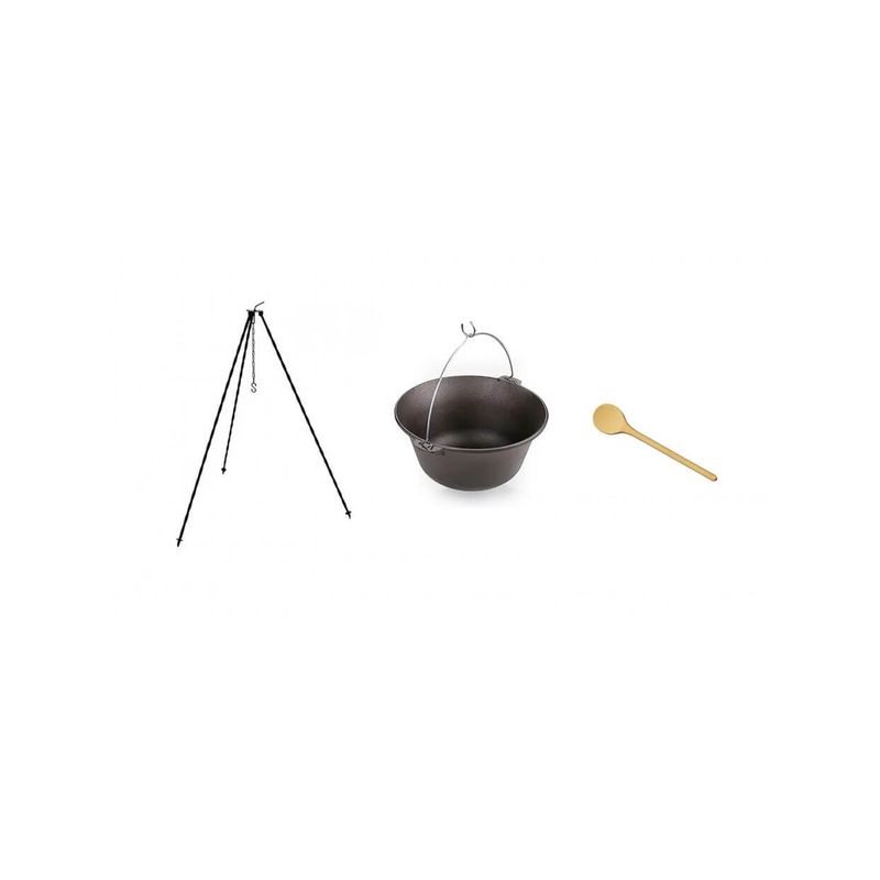 Set ceaun fonta 15lit. cu suport 1,2m si lingura de lemn 40cm Set ceaun fonta 15lit. cu suport 1,2m si lingura de lemn 40cm