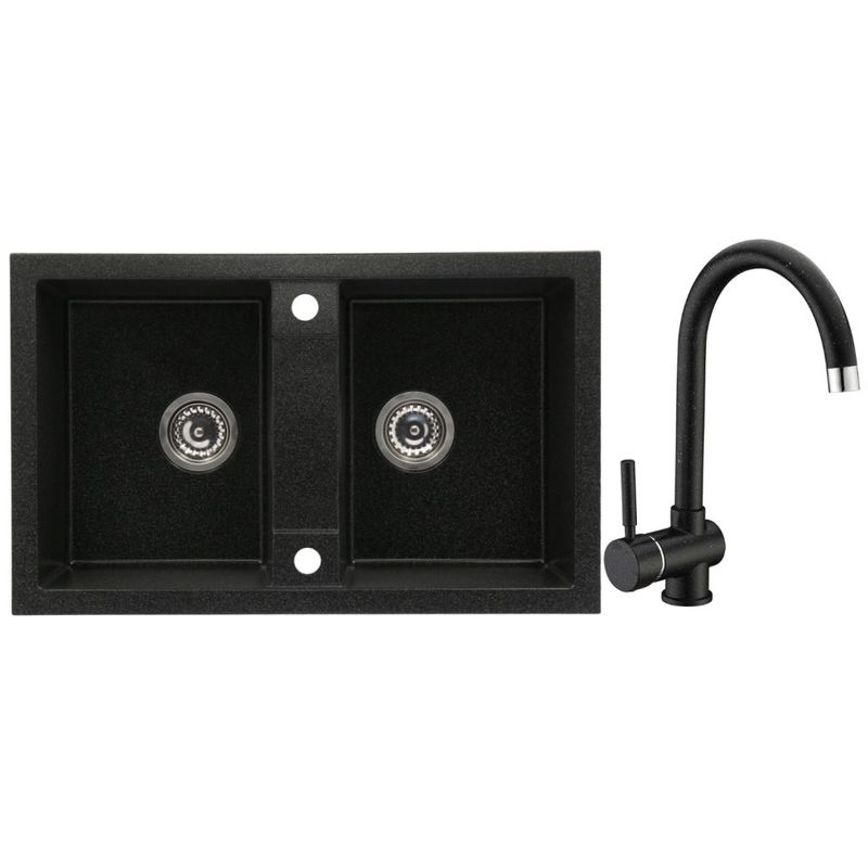 Set chiuveta bucatarie CasaBlanca Duo granit 2 cuve cu baterie BLACK4H, negru Set chiuveta bucatarie CasaBlanca Duo granit 2 cuve cu baterie BLACK4H, negru