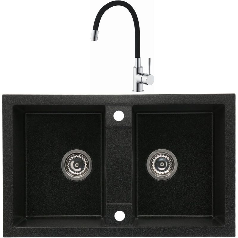 Set chiuveta bucatarie CasaBlanca Duo granit cu 2 cuve cu baterie BFX4A-N, negru Set chiuveta bucatarie CasaBlanca Duo granit cu 2 cuve cu baterie BFX4A-N, negru