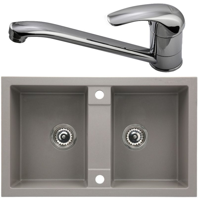 Set chiuveta bucatarie CasaBlanca Duo granit cu 2 cuve cu baterie BRI4, gri Set chiuveta bucatarie CasaBlanca Duo granit cu 2 cuve cu baterie BRI4, gri