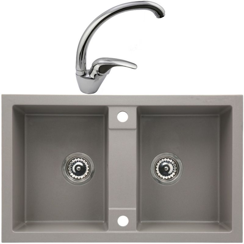 Set chiuveta bucatarie CasaBlanca Duo granit cu 2 cuve cu baterie BRI4A, gri Set chiuveta bucatarie CasaBlanca Duo granit cu 2 cuve cu baterie BRI4A, gri