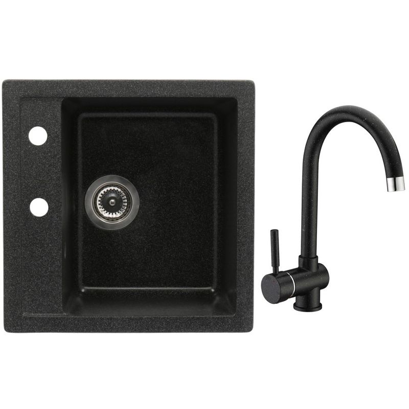 Set chiuveta bucatarie CasaBlanca Quadro granit cu 1 cuva cu baterie BLACK4H, negru Set chiuveta bucatarie CasaBlanca Quadro granit cu 1 cuva cu baterie BLACK4H, negru