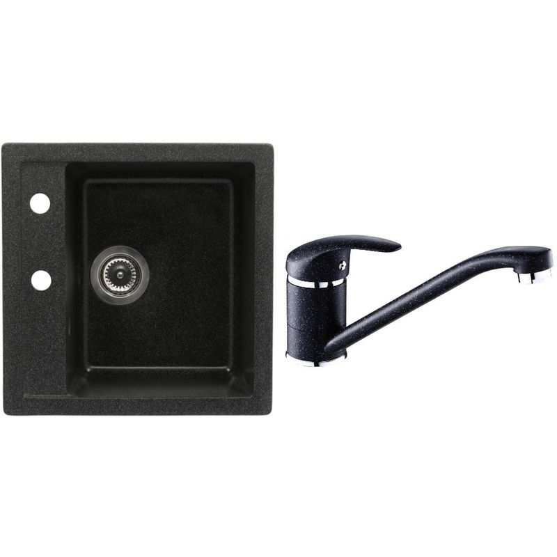 Set chiuveta bucatarie CasaBlanca Quadro granit cu 1 cuva cu baterie, negru Set chiuveta bucatarie CasaBlanca Quadro granit cu 1 cuva cu baterie, negru