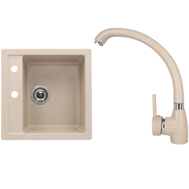 Set chiuveta bucatarie CasaBlanca Quadro granit cu 1 cuva cu baterie SAND4A, bej Set chiuveta bucatarie CasaBlanca Quadro granit cu 1 cuva cu baterie SAND4A, bej
