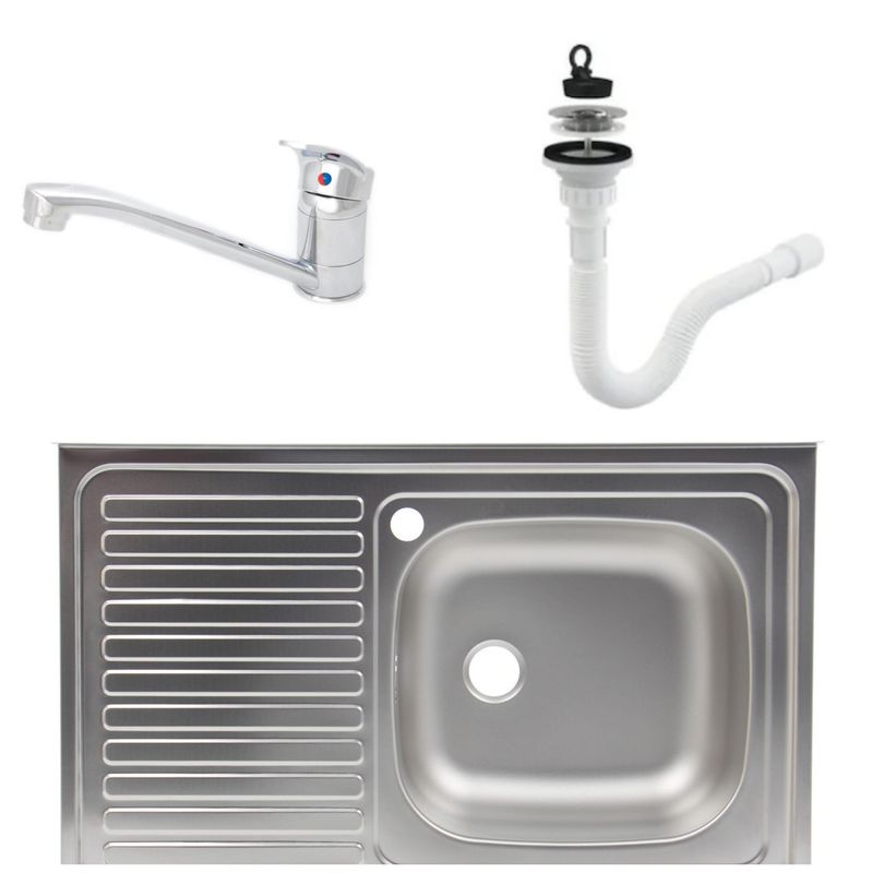 Set chiuveta masca,inox anticalcar,cuva dreapta,Raulconstruct,80x50 cm,baterie bucatarie tija lunga cu sifon de scurgere Set chiuveta masca,inox anticalcar,cuva dreapta,Raulconstruct,80x50 cm,baterie bucatarie tija lunga cu sifon de scurgere
