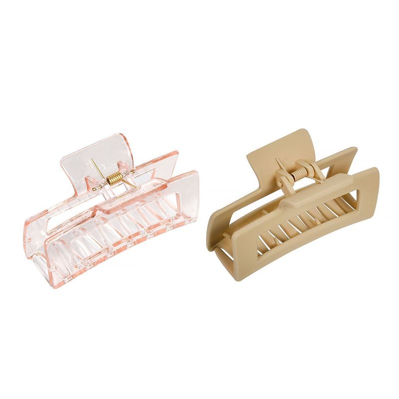 Set clame de par, dreptunghiulare, transparent si mat, nude, 8.5cm, 2 bucati Set clame de par, dreptunghiulare, transparent si mat, nude, 8.5cm, 2 bucati
