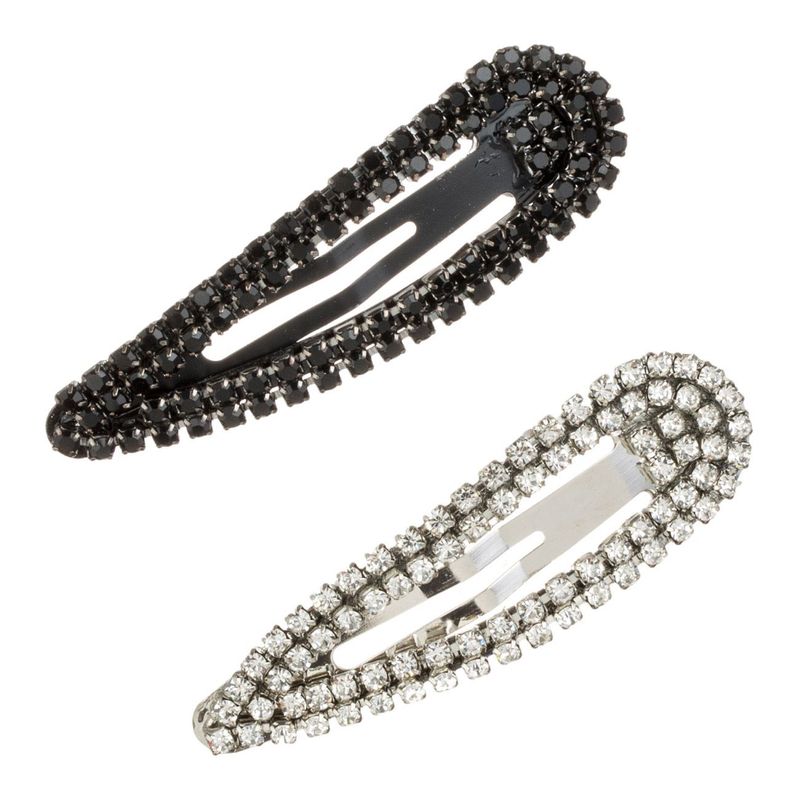 Set clame par, model metalic, strass, negru si transparent, 5.5 cm, 2 bucati Set clame par, model metalic, strass, negru si transparent, 5.5 cm, 2 bucati