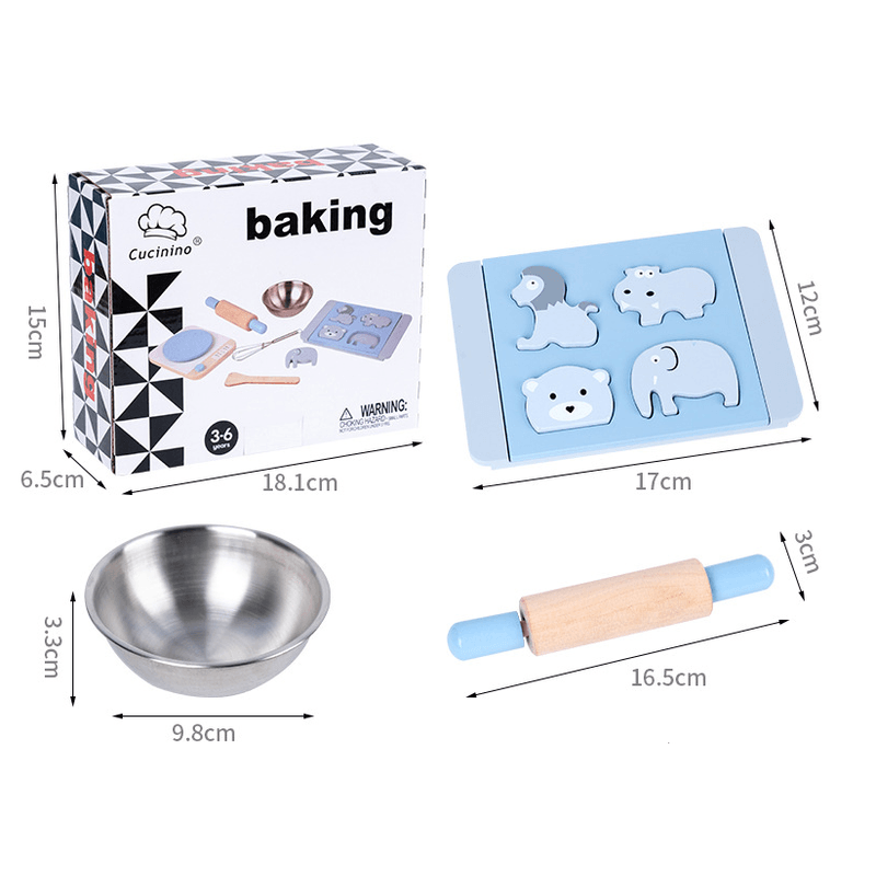 Dezvaluie o lume a imaginatiei cu setul nostru de joaca de simulare pentru coacere biscuiti din lemn, completarea perfecta pentru orice set de joaca de bucatarie. Acest set de jucarii de bucatarie din lemn este conceput pentru copiii carora le place sa se joace si sa simuleze, astfel le permite sa-si creeze lumea imaginara in care pot coace prajituri la fel ca mama sau tata. Acest set incurajeaza creativitatea, fiind totodata un instrument excelent pentru dezvoltarea abilitatilor esentiale, cum ar fi coordonarea ochi-mana, abilitatile de comunicare si abilitatile de rezolvare a problemelor. Acest set contine: - o tava de copt din lemn pentru prajituri cu 4 fursecuri de animale, - o spatula de lemn - un tel de metal - un cantar pentru cantarire din lemn - un bol de amestecare din metal - un sucitor de lemn