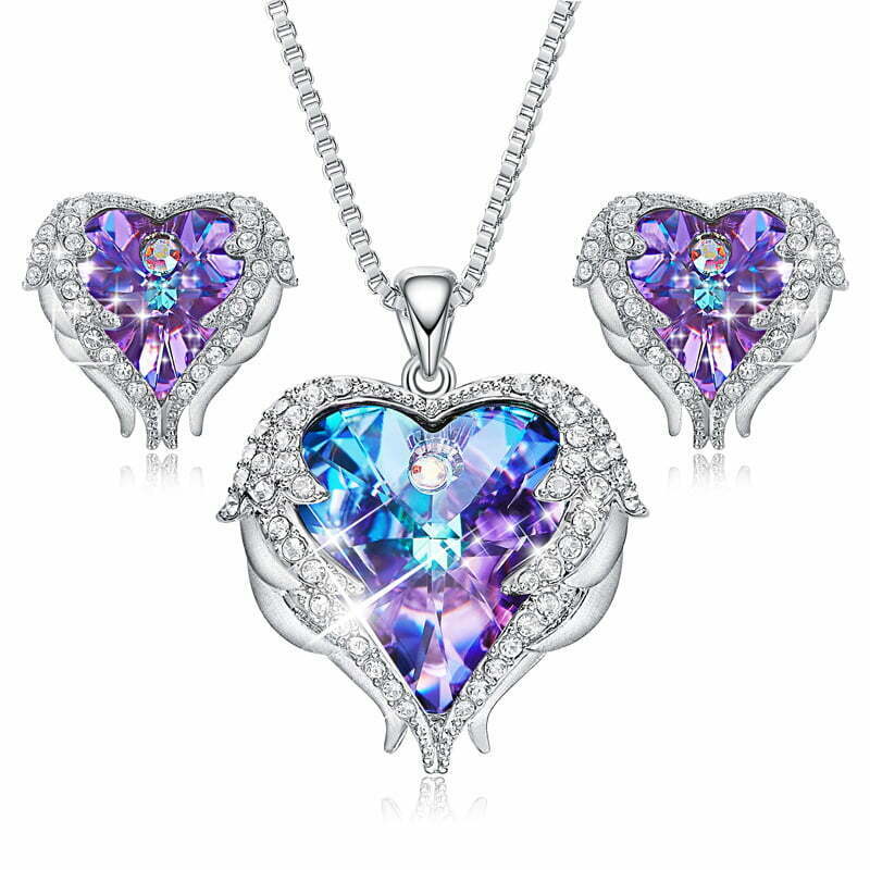 Set Colier si cercei MBrands Placat cu Aur Alb, cristale Austria, forma inima - Alb/Mov Set Colier si cercei MBrands Placat cu Aur Alb, cristale Austria, forma inima - Alb/Mov