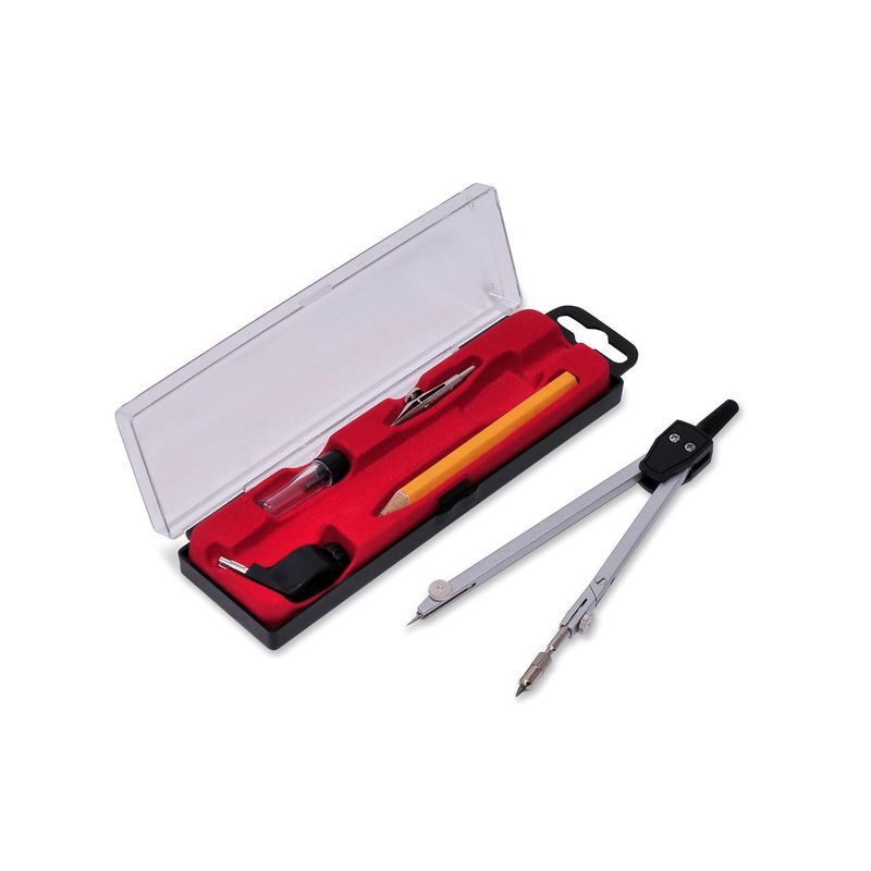 Set compas geometrie, metalic, 5 piese, culoare negru argintiu Set compas geometrie, metalic, 5 piese, culoare negru argintiu