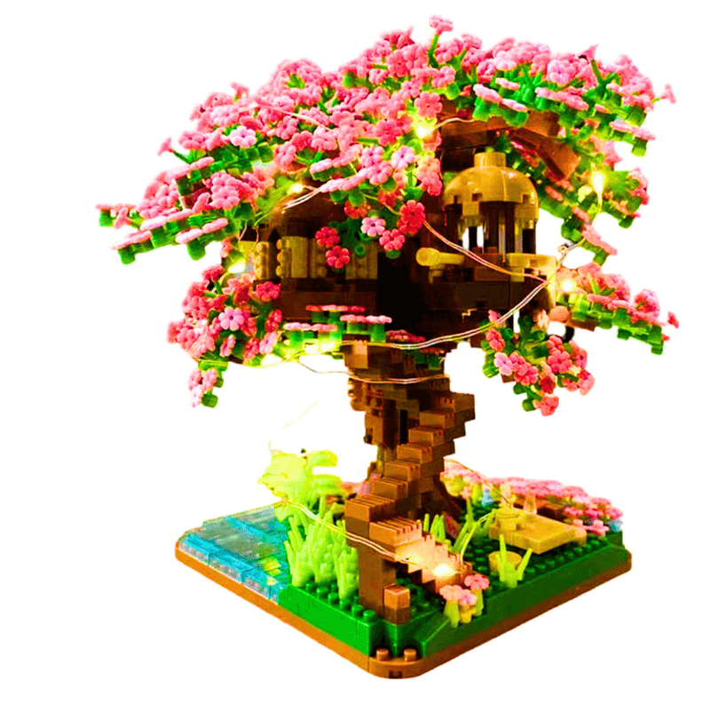 Set Constructie 3D, casa in copac cu flori si moara de vant, 2008 piese, multicolor Set Constructie 3D, casa in copac cu flori si moara de vant, 2008 piese, multicolor