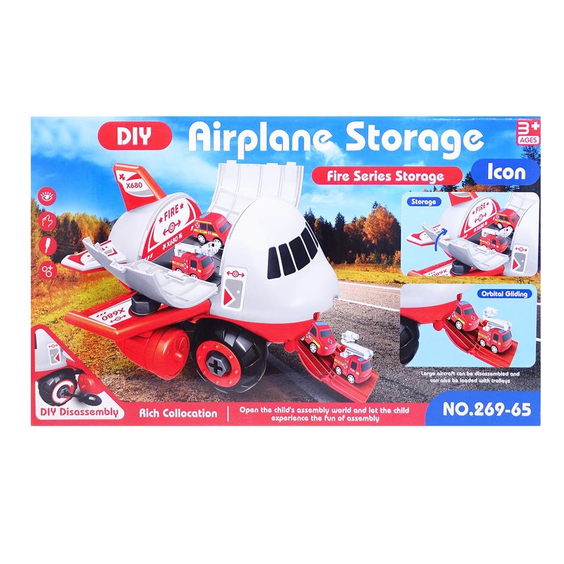 Set constructie avion pompieri rosu cu 4 masinute, salamandra kids® Set constructie avion pompieri rosu cu 4 masinute, salamandra kids®