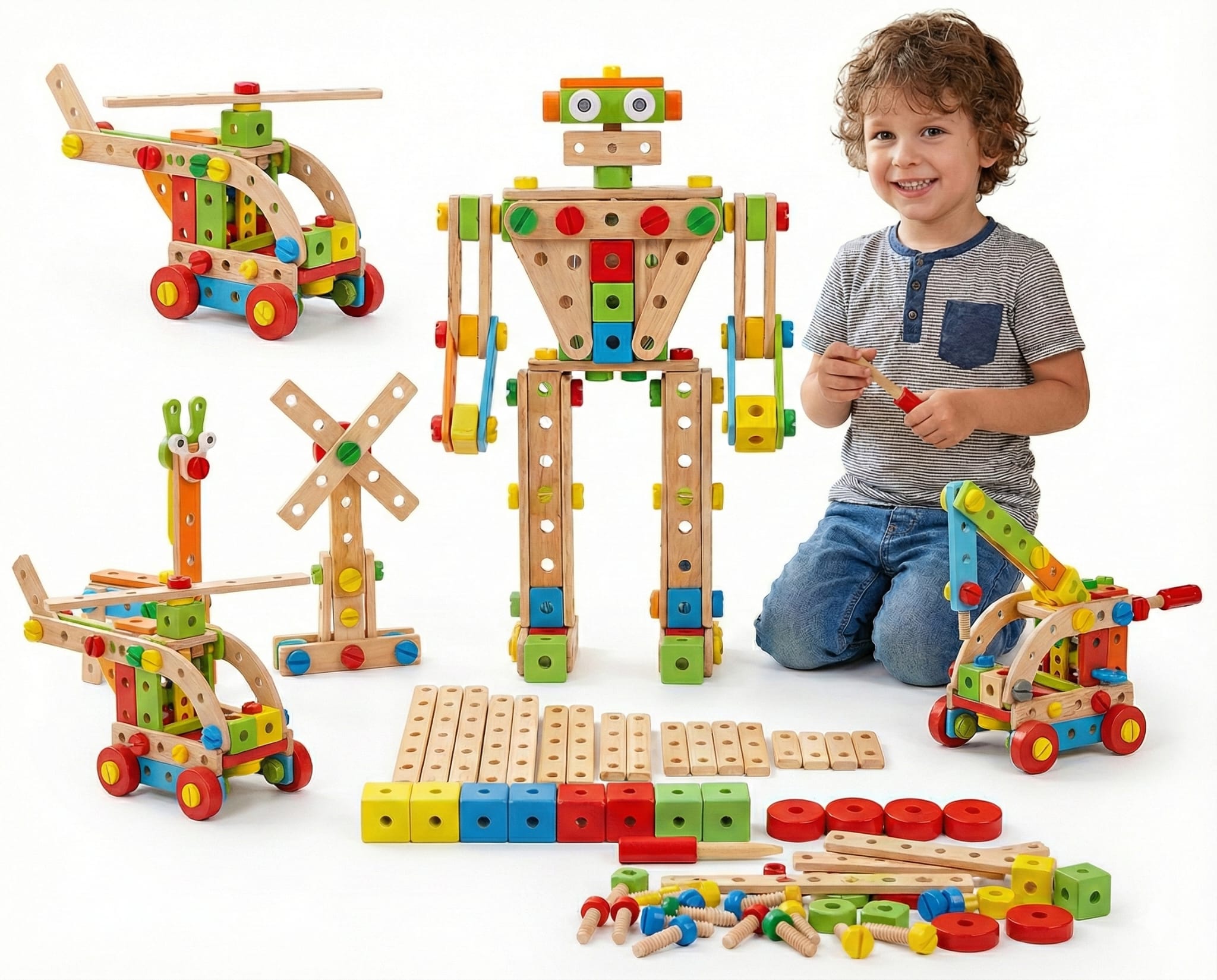 Set Constructie din Lemn 73 Piese Auraliv® – Jucarie Montessori DIY, Creativitate & Constructii 3D