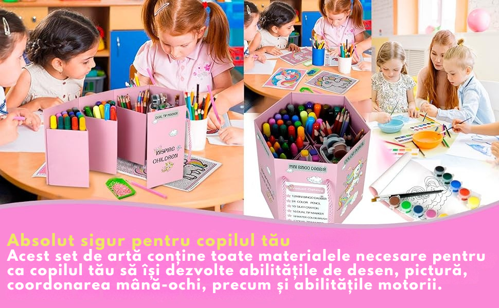 - Dezvolta creativitatea: Copiii isi pot exprima imaginatia prin desen, pictura si alte activitati artistice.