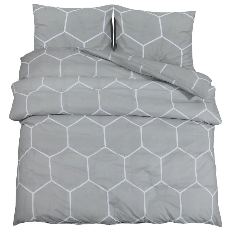 Set cu husa de pilota, gri și alb, 240x220 cm, bumbac Set cu husa de pilota, gri și alb, 240x220 cm, bumbac