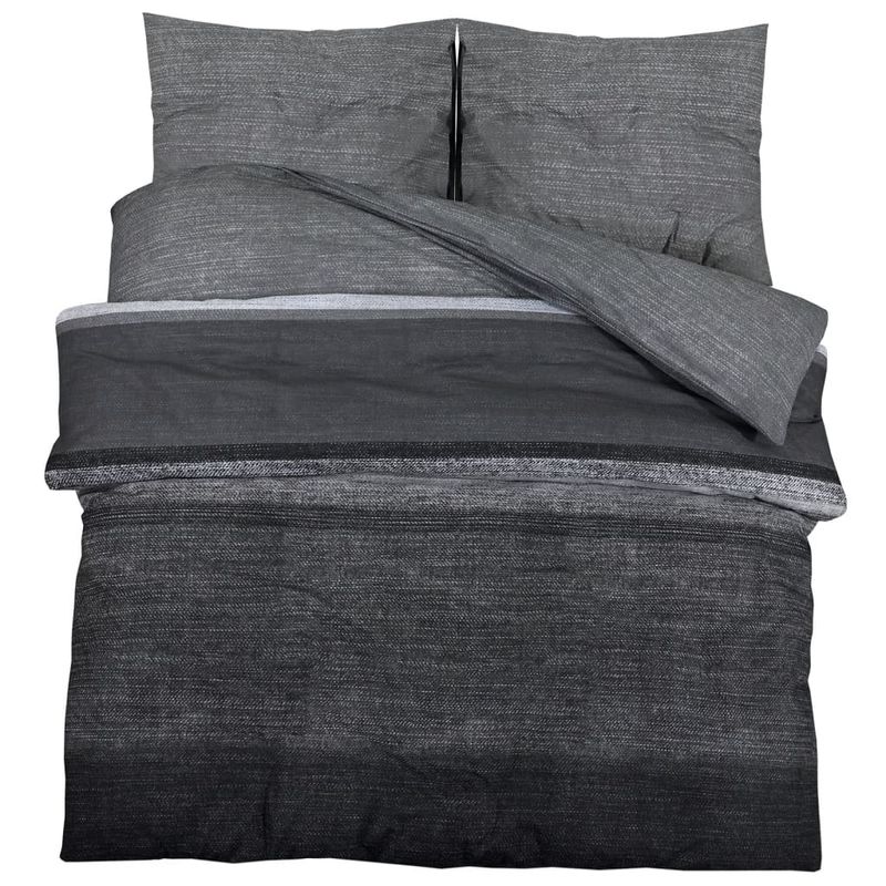 Set cu husa de pilota, gri inchis, 200x220 cm, bumbac, gri închis și negru Set cu husa de pilota, gri inchis, 200x220 cm, bumbac, gri închis și negru