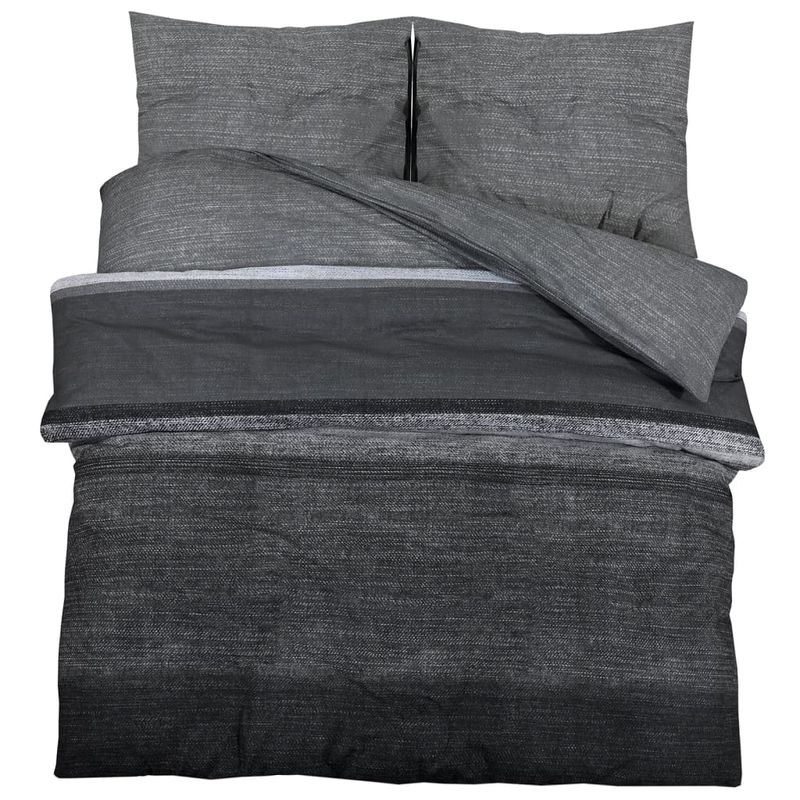 Set cu husa de pilota, gri inchis, 225x220 cm, bumbac, gri închis și negru Set cu husa de pilota, gri inchis, 225x220 cm, bumbac, gri închis și negru