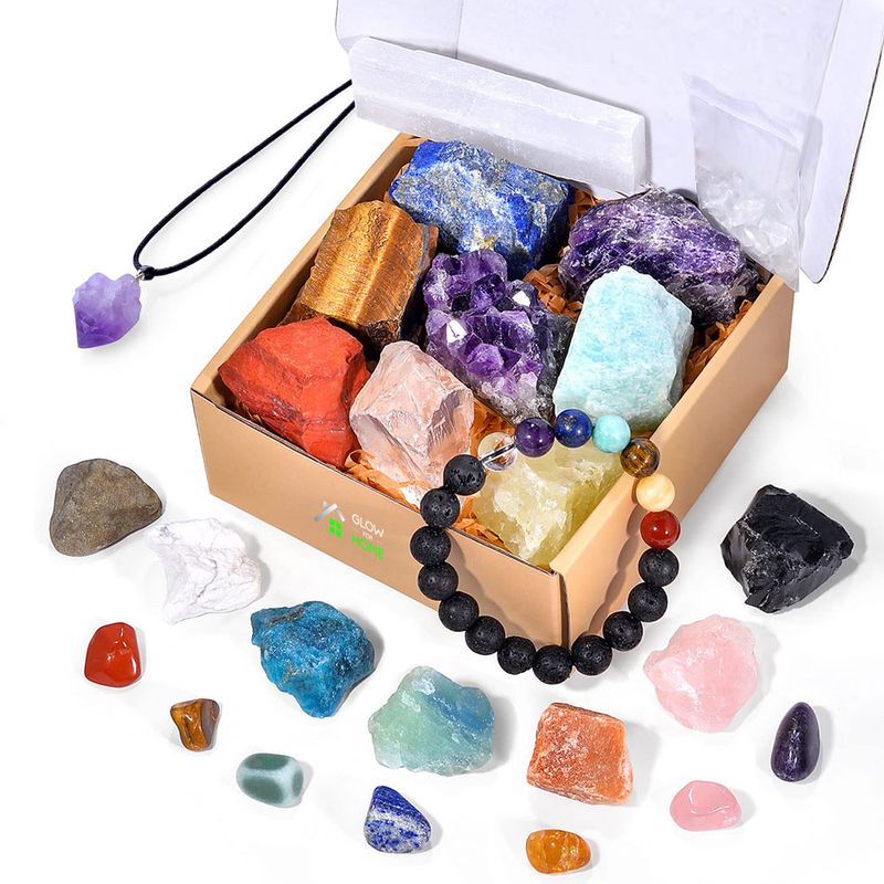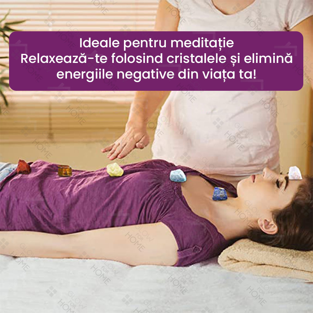 Fiecare cristal din acest set este asociat cu una sau mai multe dintre cele sapte chakre principale din corpul uman, ceea ce inseamna ca pot fi utilizate pentru a restabili echilibrul energetic in aceste puncte de energie. Aceasta va promova starea de bine si armonie in intregul vostru fiinta.