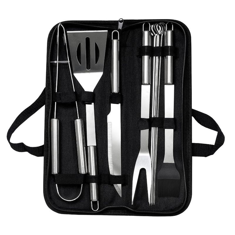 Set de 10 ustensile pentru gratar din Inox cu Husa de Depozitare Set de 10 ustensile pentru gratar din Inox cu Husa de Depozitare