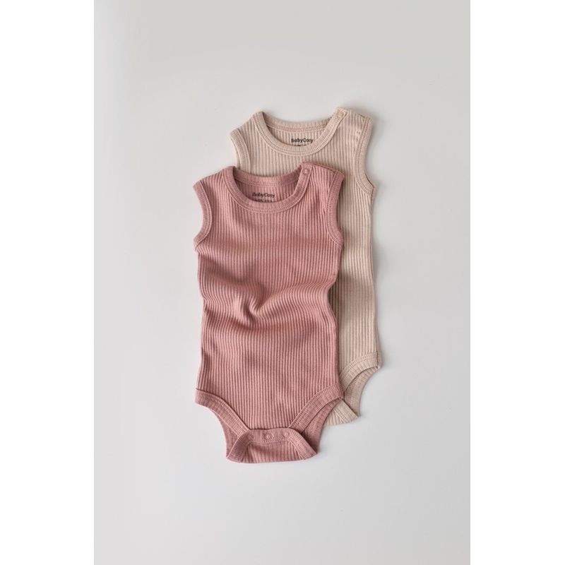 Fashion, accesorii si bijuteriiCopiiImbracaminte copiiBody-uri copiiSet de 2 body-uri fara maneci din bumbac organic si modal - Roz/Blush BabyCosy (Marime: 0-3 Luni)
