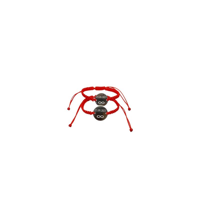 Set de 2 bratari rosii impletite pentru cupluri personalizat cu data si infinit Set de 2 bratari rosii impletite pentru cupluri personalizat cu data si infinit