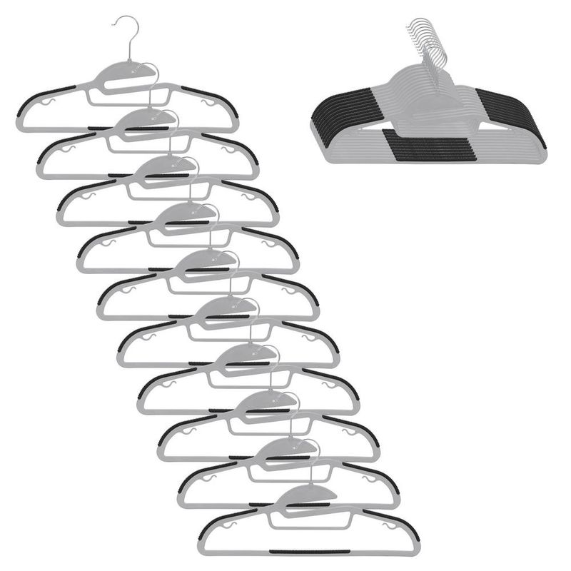 Set de 20 umerase pentru haine, realizate din material PE rezistent, ideale pentru organizarea eficienta a garderobei. Forma ergonomica ajuta la mentinerea hainelor fara deformare, iar suprafetele antiderapante de pe umeri si bara inferioara previn alunecarea. Carligele metalice rotative la 360° permit utilizarea flexibila, iar carligele interioare sunt utile pentru bretele sau accesorii.