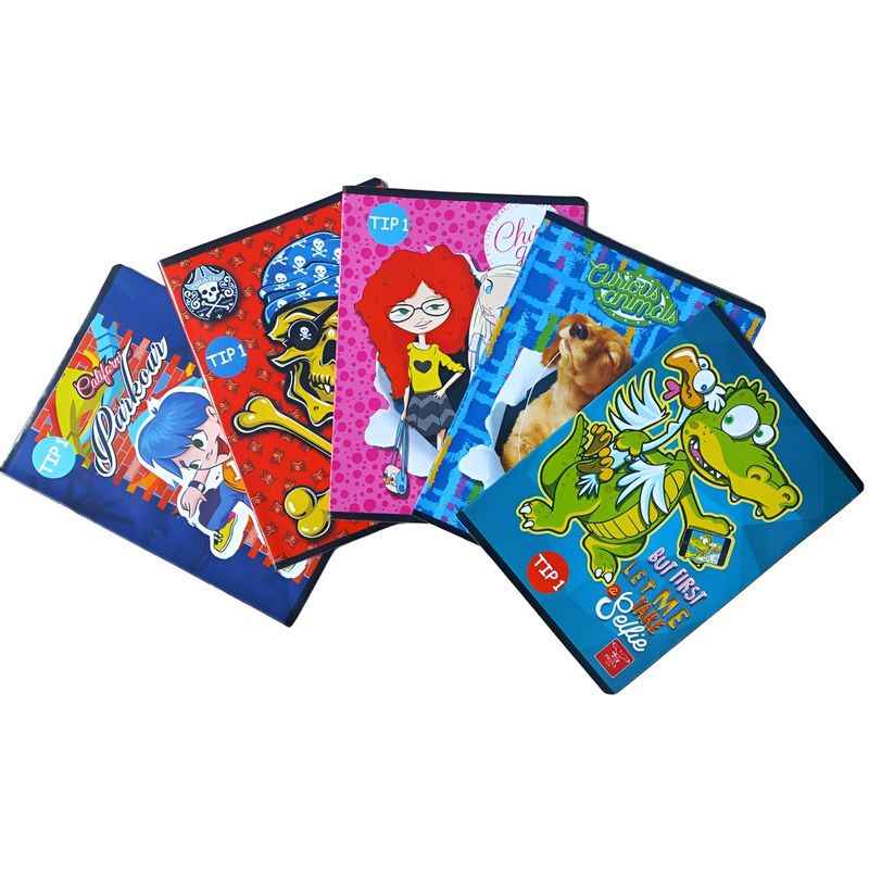 Set de 5 Caiete Tip 1, Linomag®, Pentru scolari si profesori, Modele diverse, A5, 24 FILE, 70gm², Multicolor Set de 5 Caiete Tip 1, Linomag®, Pentru scolari si profesori, Modele diverse, A5, 24 FILE, 70gm², Multicolor