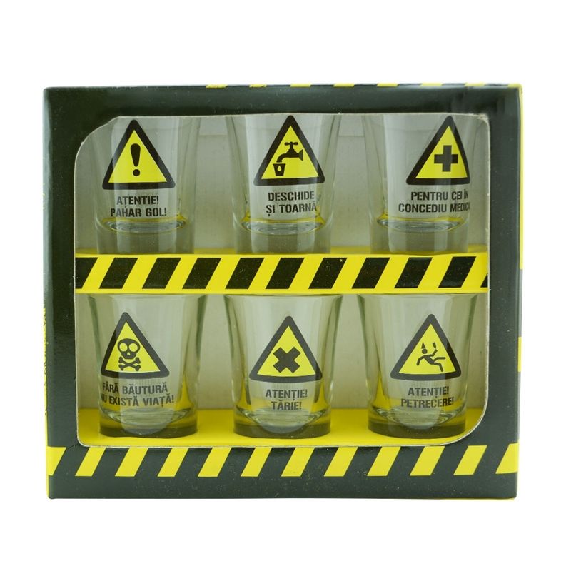 Set de 6 pahare shot cu mesaje - Warning signs Set de 6 pahare shot cu mesaje - Warning signs