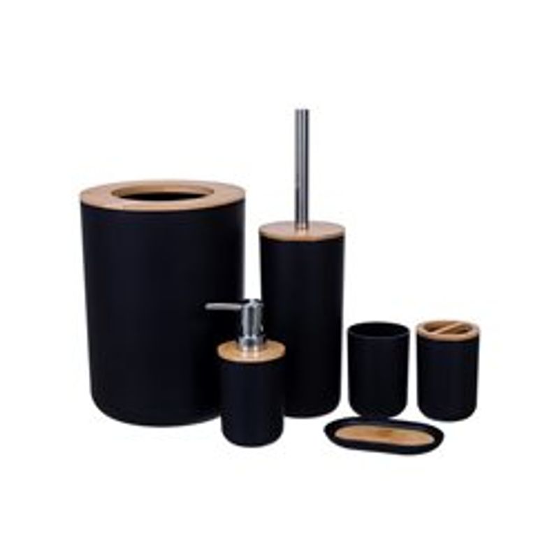 Set de baie, 6 piese, plastic/bambus, negru Set de baie, 6 piese, plastic/bambus, negru