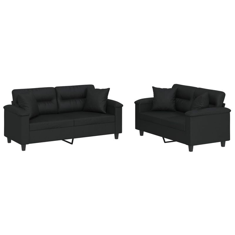 Set de canapele cu perne, 2 piese, negru, piele ecologica Set de canapele cu perne, 2 piese, negru, piele ecologica