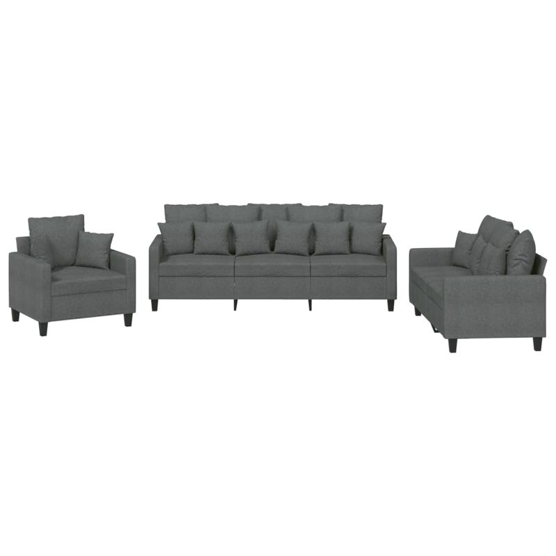 Set de canapele cu perne, 3 piese, gri inchis, textil Set de canapele cu perne, 3 piese, gri inchis, textil