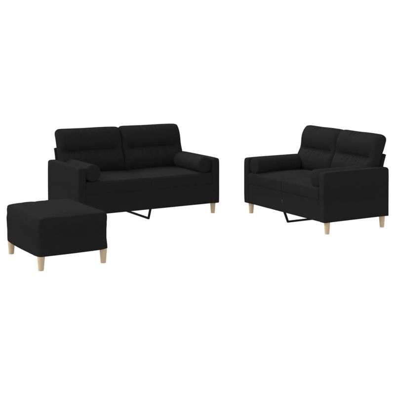 Set de canapele cu perne, 3 piese, negru, textil Set de canapele cu perne, 3 piese, negru, textil