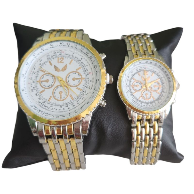 Set de ceasuri pentru cuplu analog quartz auriu-argintiu Set de ceasuri pentru cuplu analog quartz auriu-argintiu