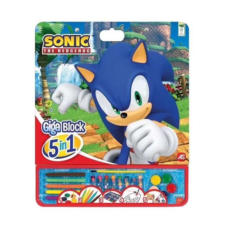 Set de Colorat Bloc mare, model Sonic, 5 in 1 cu Accesorii, 3ani+, 35x1x42 cm Set de Colorat Bloc mare, model Sonic, 5 in 1 cu Accesorii, 3ani+, 35x1x42 cm