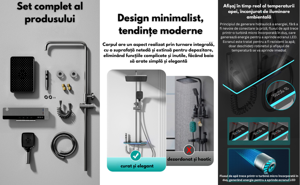 Set de dus cu Iluminare LED si afisaj Digital al Temperaturi, coloana cu termostat si turbina generatoare de curent Set de dus cu Iluminare LED si afisaj Digital al Temperaturi, coloana cu termostat si turbina generatoare de curent