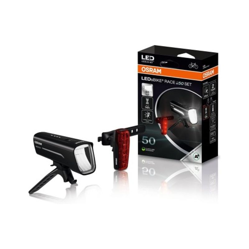 Set lumini bicicleta Osram LEDsBIKE RACE 50Set – iluminare LED puternica, autonomie extinsa, incarcare rapida