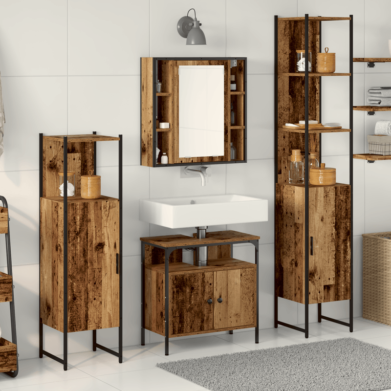 Set de Mobilier pentru Baie din 4 Piese - Lemn Vechi si Lemn Ingineresc Set de Mobilier pentru Baie din 4 Piese - Lemn Vechi si Lemn Ingineresc