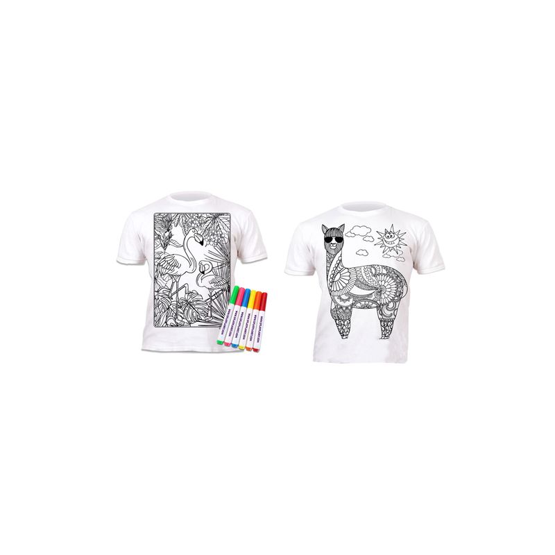 Dezvolta imaginatia si indemanarea celei mici prin colorarea acestor tricouri in culorile preferate.