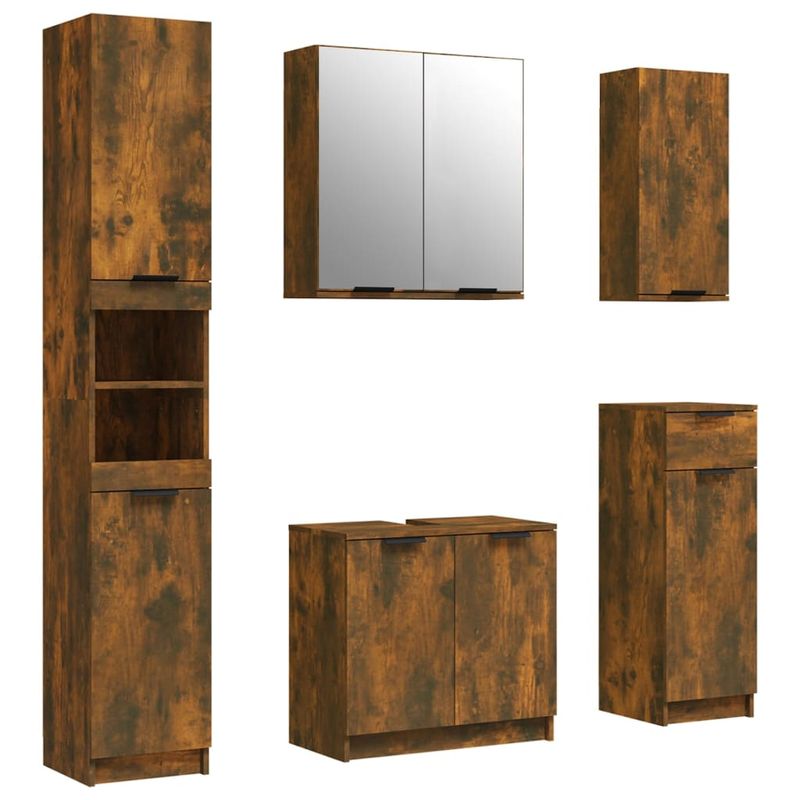 Set dulapuri de baie Set dulapuri de baie, 5 piese, stejar afumat, lemn prelucrat