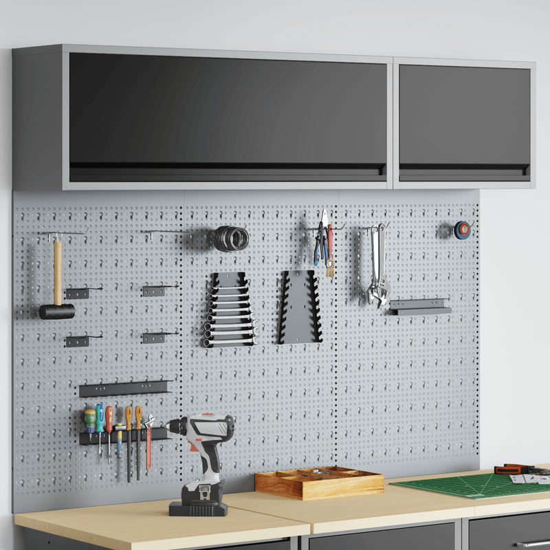 Set dulap unelte & panou carlige de perete, 5 piese negru metal Set dulap unelte & panou carlige de perete, 5 piese negru metal