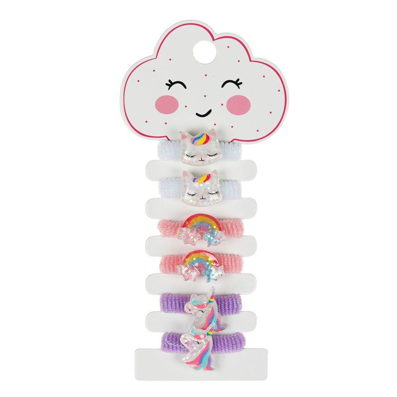 Set elastice par copii, multicolor, 6 bucati, model pisica si unicorn Set elastice par copii, multicolor, 6 bucati, model pisica si unicorn
