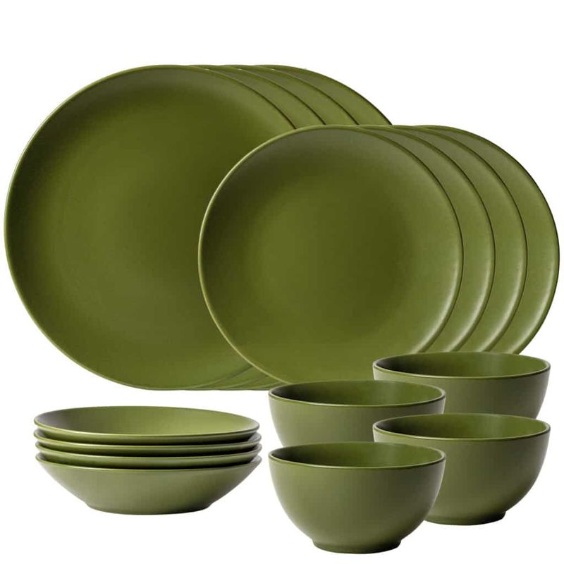Transforma fiecare masa intr-o experienta plina de eleganta si stil cu Setul de Farfurii 16 Piese Olive Green de la Cesiro
