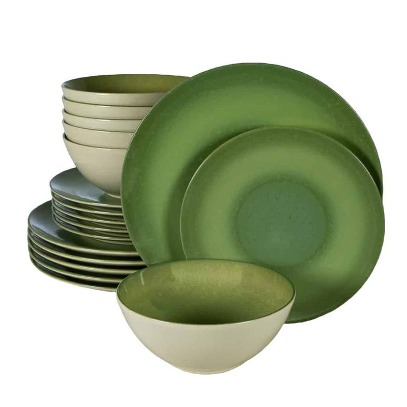 cu acest Set de Farfurii 18 Piese, pentru 6 Persoane, Kiwi, Cesiro, Alb Ivoire Lucios cu Verde