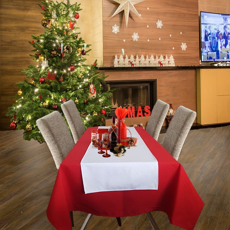 Set Fata de masa rosie cu napron alb uni Kotonia Home Emma 04, creton, 180x220 cm + 45x180 cm, 100% bumbac Set Fata de masa rosie cu napron alb uni Kotonia Home Emma 04, creton, 180x220 cm + 45x180 cm, 100% bumbac