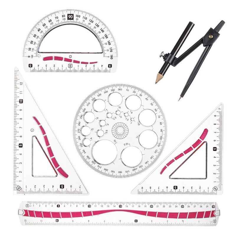 Set geometrie, little president, rigle transparente model rosu, 6 piese Set geometrie, little president, rigle transparente model rosu, 6 piese